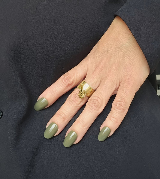 Cette bague stylée et originale me convient parfaitement (tout comme les bagues CALYPSO et CALLIOPE reçues en cadeau à l ouverture du site et que je ne quitte jamais)
