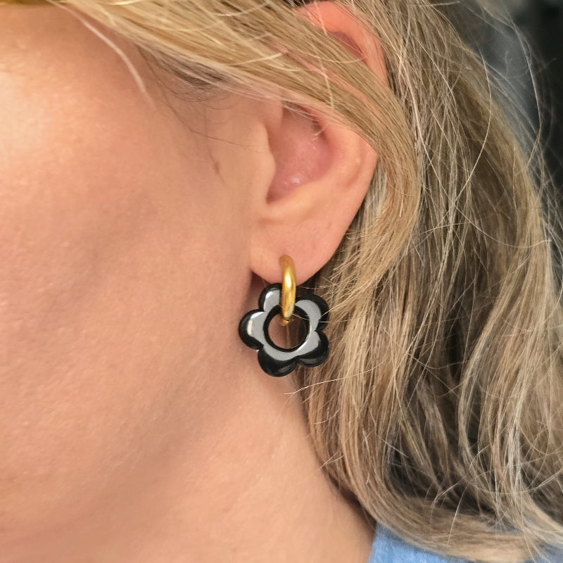 Les boucles Chloris se transforment selon tes envies. Disponibles en 24 coloris, ces créoles dorées sont livrées en coffret pack personnalisable : tu choisis 1, 2 ou 3 coloris, et tu reçois autant de paires de fleurs interchangeables à clipser/déclipser.
