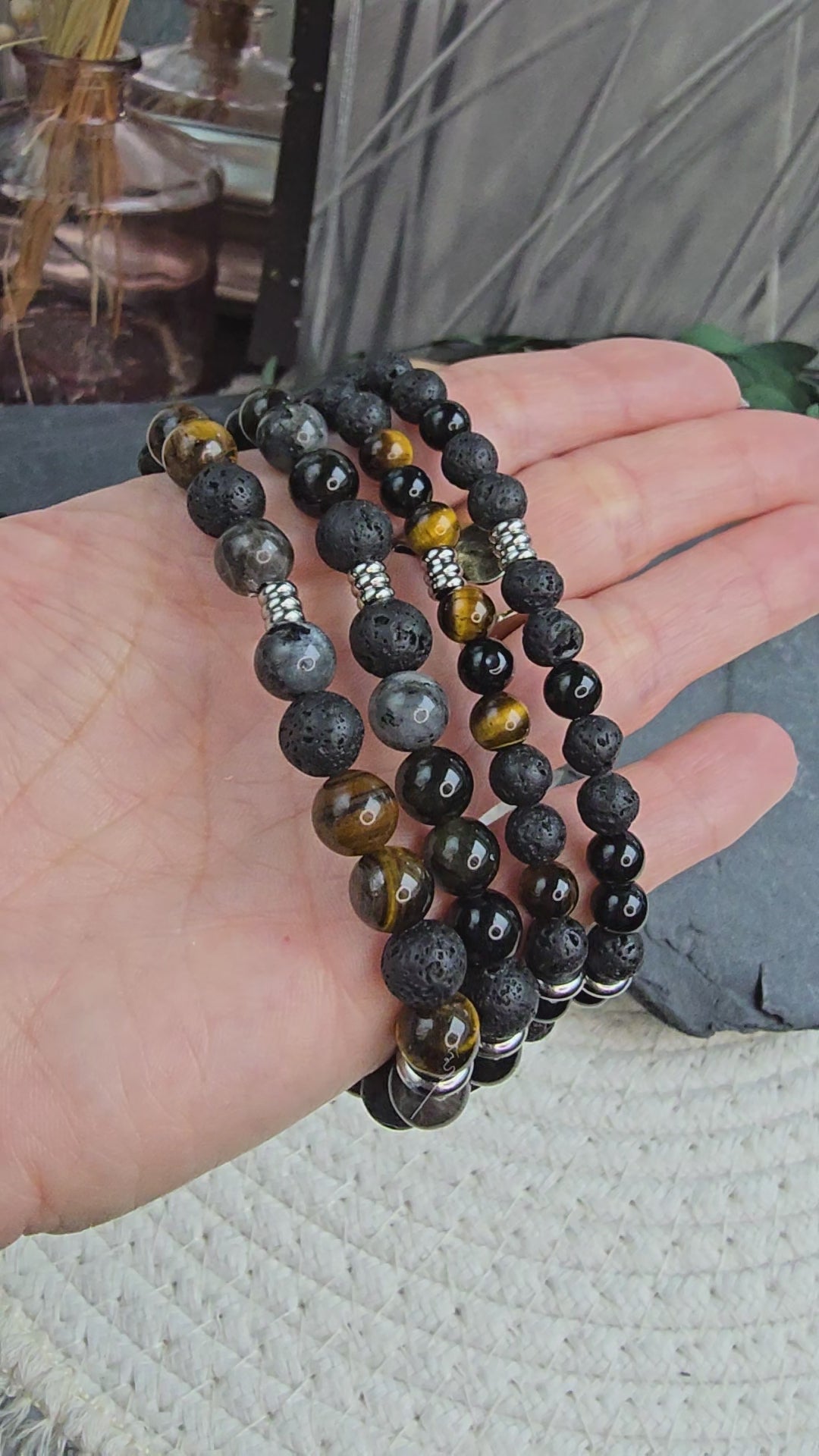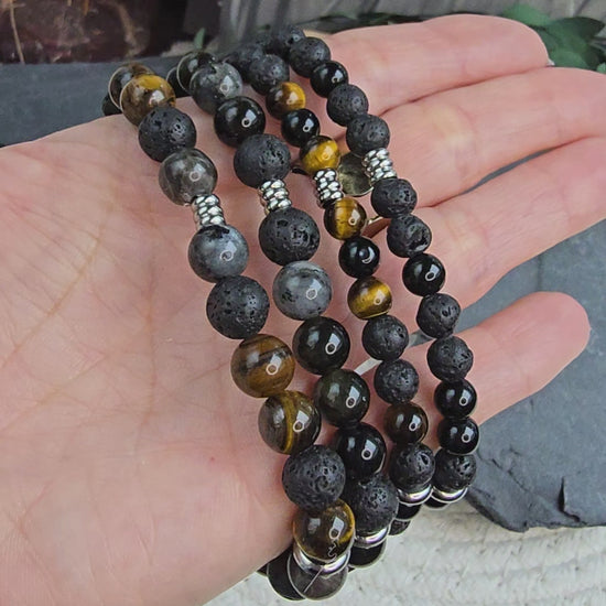 Bracelet homme VULKAN 8MM pierres naturelles – lave, labradorite, obsidienne
